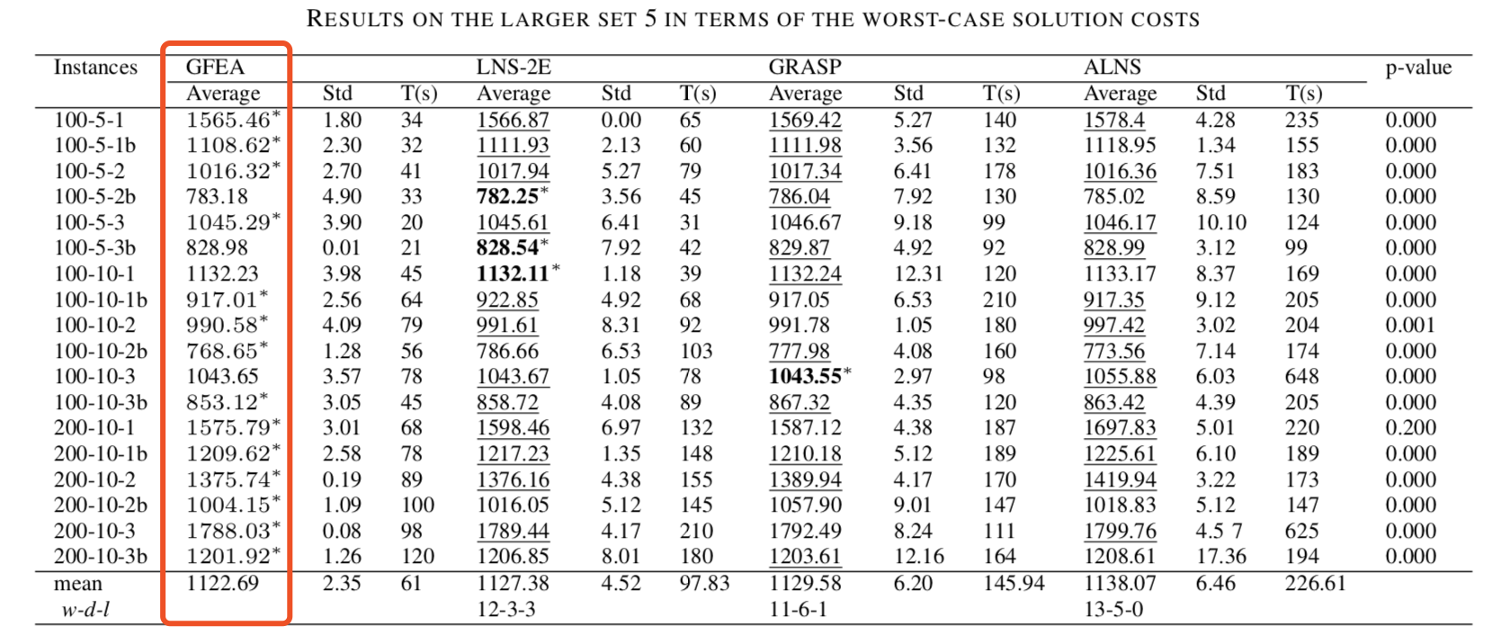 图六 GFEA算法在大规模测试集(SET 5)上重复实验结果 目前大规模双层次车辆路径问题[6]作为城市物流领域前沿核心的复杂规划难题,具有极高的研究意义和学术价值。本文针对大规模路径优化问题中双层次分配的复杂性,提出了一种求解2E-VRP问题的基于图的模糊进化算法(GFEA),该算法既提高了双层次车辆路径问题的效率和性能,也为城市物流多层次运输调度提供高效可行的实施方案。下面我们给出一些基于该算法的应用案例。