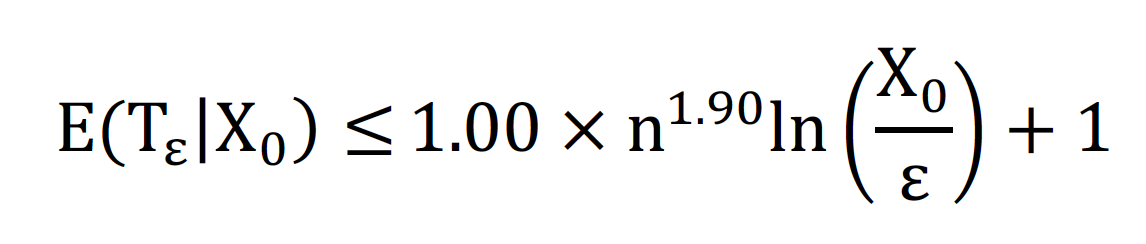 图十一 实际平均首达时间与估算上界的比较结果 本次研究以平均增益模型作为理论分析框架,使用统计采样实验来辅助估算连续型进化算法计算时间的过程,提出了一种基于平均增益模型的连续型进化算法时间复杂度估算方法。除了平均增益模型外,其他理论分析工具也可以用于讨论各种前沿进化算法的计算时间。近期有一些同行的工作甚至突破了(1+1)EA的结果,不过也是一些理论构造的特例。在未来的工作中,如果把本项工作提出的估算方法引入到层次分析法、漂移分析、转换分析等优秀的分析框架里,将有望得到丰硕的研究成果。