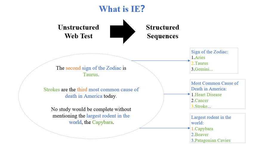 信息抽取(Information Extraction,IE)是从自然语言文本中抽取出任务所需的特定信息,帮助我们将海量内容进行自动分类、提取和重构的一种技术。