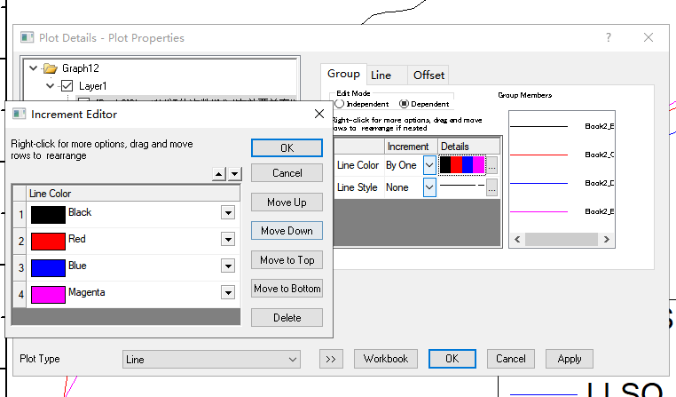 图10 纵坐标包含单位刻度的折线图 如果想要更改统计图的样式,只需要用鼠标在统计图上双击,在名为【Plot Details - Plot Properties】的弹窗中进行设置。如果我们想要修改折线图的颜色,那么可以在【Plot Details - Plot Properties】的【Group】面板中对参数【Color】进行修改,点击【Details】即可以对每条折线的颜色进行单独修改,如图11所示。