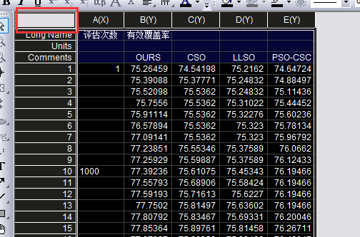 图2 Origin通过菜单栏按钮导入数据 被导入的数据会在工作表中显示。在工作表中,一般默认第一列为X轴,第二列为Y轴。如果用户还想添加新列,可以点击鼠标右键并选择【Add New Column】进行添加。 此外,工作表第一行【Long Name】表示该列名称,第二行【Units】表示数据单位,第三行【Comments】表示注释,后面的行均为数据行,如图3所示。