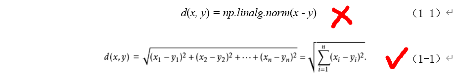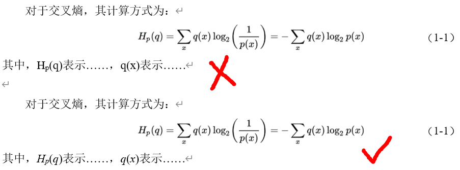 2. 公式的引用不具体:应该使用“如式(2-3)”的引用方式,而不是“如(2-3)”,以便让读者清楚地知道此处引用的是公式; 3. 数学符号与代码符号混用:常见的有使用“*”作为乘号,甚至将C++语言调用函数的方式用于公式中。