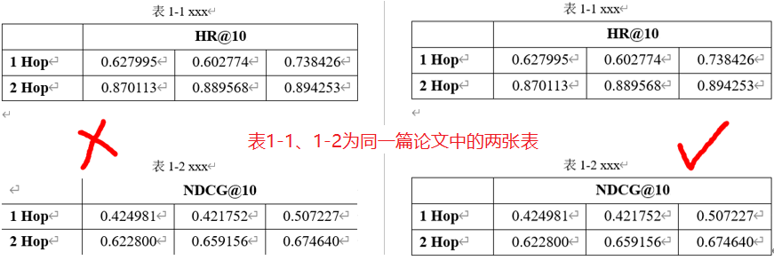 (十)表 1. 表编号缺失或重复:每个表都应该在上方写出表编号(章-表序号)和简明的表名;