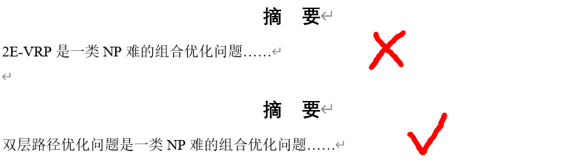 (二)摘要 1. 能用中文表达的词语却直接使用未注明释义的英文缩写;