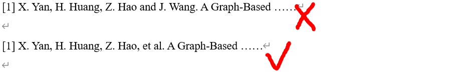 (3)行距与正文不一致等。 6. 引用不规范: (1)没有做到每一篇参考文献都在正文中引用,并按正文中出现的先后次序罗列; (2)在类似“XX等人[11]研究的……”的引用时,有的论文把三位作者全列出来,正确做法应该是只列一位作者;