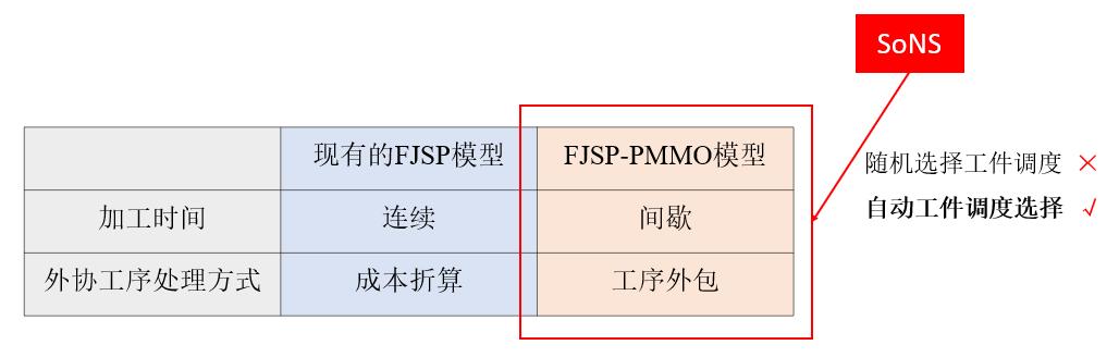 图1 生产车间 现有针对FJSP的研究通常假设生产调度模型中的机器可以长时间运转,无需停工,即加工时间连续。然而,这与真实生产场景中必须考虑机器临时性检修或周期性维护导致加工过程间歇性停止的情况不符。此外,出于对聚焦核心业务或者降低生产成本的考虑,工厂会委托第三方代加工产品的部分工序。现有的FJSP模型主要采用成本折算的方式处理外协工序,即将工序外包作为可选项而非强制性约束。 由于现有调度模型尚未考虑上述两种在实际工业场景中常见的约束情形,因此需要建立更真实的FJSP模型以及能求解该复杂调度问题的算法。在求解调度问题的优化算法方面,现有基于学习的优化算法难以处理组合优化问题中结构化信息数据维度不确定的问题。此外,已有算法主要采用直接生成最终解或以贪婪策略展开搜索的寻优方式,所以在优化结果的精确度上难以与传统的元启发式算法相比。 为解决电源设备生产制造行业中的实际调度问题,智能算法研究中心的研究人员对带周期维护及强制外包约束的柔性工作车间调度问题(Flexible Job-shop Scheduling Problem with the Periodic Maintenance and Mandatory Outsourcing constraints,FJSP-PMMO)进行建模,并设计了一个基于强化学习的微搜索算法——自组织神经搜索框架(Self-organizing Neural Scheduler, SoNS)来求解FJSP-PMMO问题[1]。与最新的FJSP模型相比[2-3],FJSP-PMMO考虑了间歇维护以及外包因素,故每个工件的工序数目以及加工顺序不同,且加工机器数≠工件工序数,解的表示为有向无环图而非顺序序列。在算法层面,SoNS采用机器学习的方法实现了对工件加工工序以及加工位置的自适应选择,替代了同类方法中使用随机策略进行调度的方式,提高了调度的可靠性和准确性。该成果已发表在人工智能领域的国际顶级学术期刊IEEE Transactions on Cybernetics(JCR一区,影响因子19.118)上。