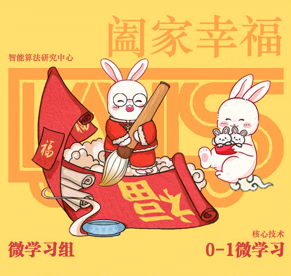 亲爱的公众号读者: 金虎归山辞旧去,玉兔下凡迎春来。智能算法研究中心携九小福兔给您拜年了!祝您兔年大吉,在新的一年里扬眉“兔”气,大展宏“兔”!