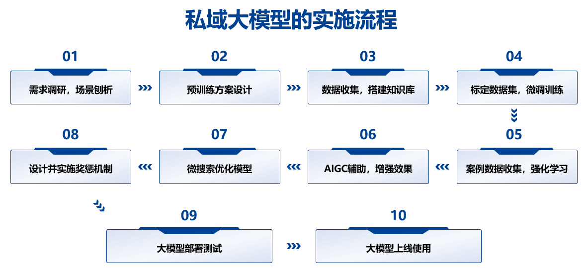 如果现在问我大模型赋能各行各业的问题,我首先会问你所讲的大模型是指什么?如果你指的是通用大模型,很遗憾,目前它还难以达到显著的赋能效果。但如果你有自己的垂直大模型或本地部署的大模型,我可以告诉你如何构建私域大模型。当然,你也可以选择有成功案例和丰富经验的团队来帮助你完成这一过程,从而避免在试错过程中产生不必要的损失。
