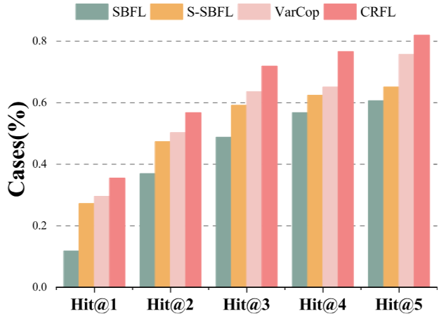 图5 CRFL与基准方法在单缺陷案例上的定位性能比较