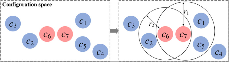 如图3所示,可以在配置空间中表示这些配置,并通过汉明距离等度量方法计算配置间的相似性。据此,可为每个失败配置建立一个搜索半径,用以识别与之相似的通过配置。