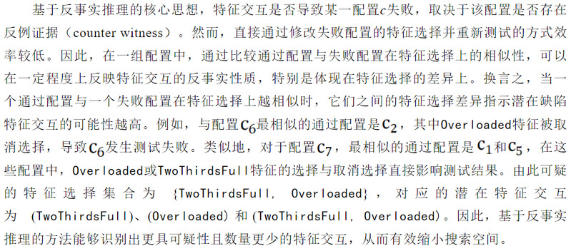 定义2(可疑特征选择)可疑特征选择被定义为,基于一个失败配置e,相对于通过配置集(PCS)生成的所有特征选择差异的并集,即