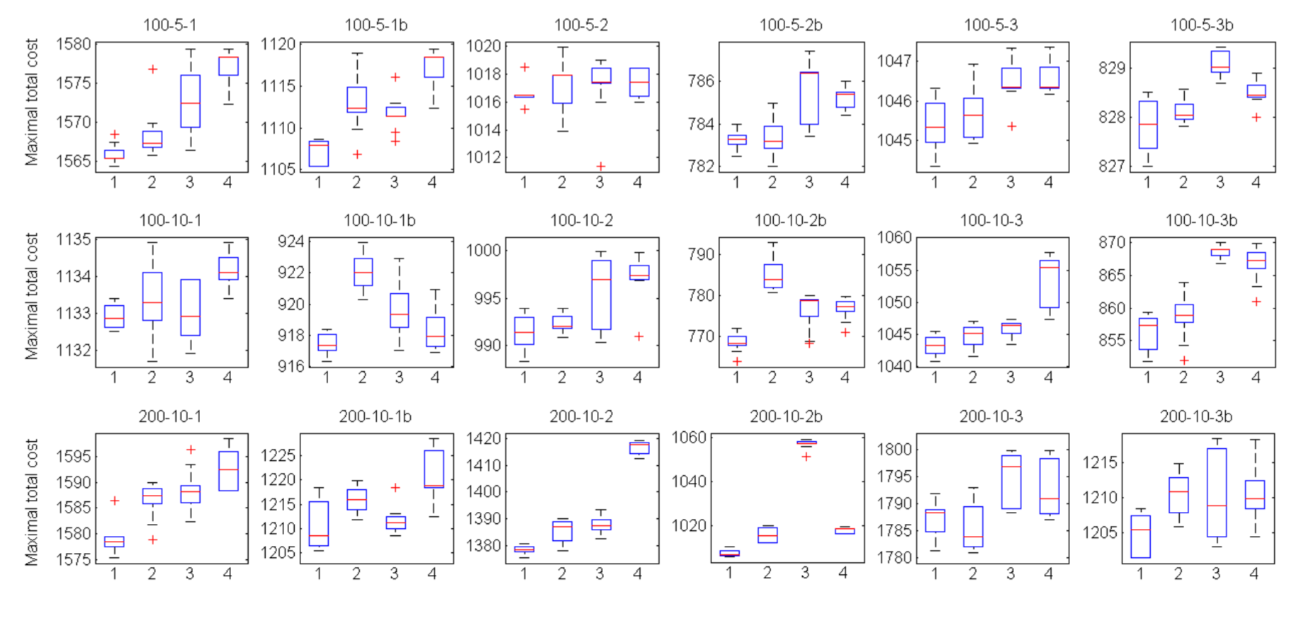 图六 GFEA算法在大规模测试集(SET 5)上重复实验结果 目前大规模双层次车辆路径问题[6]作为城市物流领域前沿核心的复杂规划难题,具有极高的研究意义和学术价值。本文针对大规模路径优化问题中双层次分配的复杂性,提出了一种求解2E-VRP问题的基于图的模糊进化算法(GFEA),该算法既提高了双层次车辆路径问题的效率和性能,也为城市物流多层次运输调度提供高效可行的实施方案。下面我们给出一些基于该算法的应用案例。