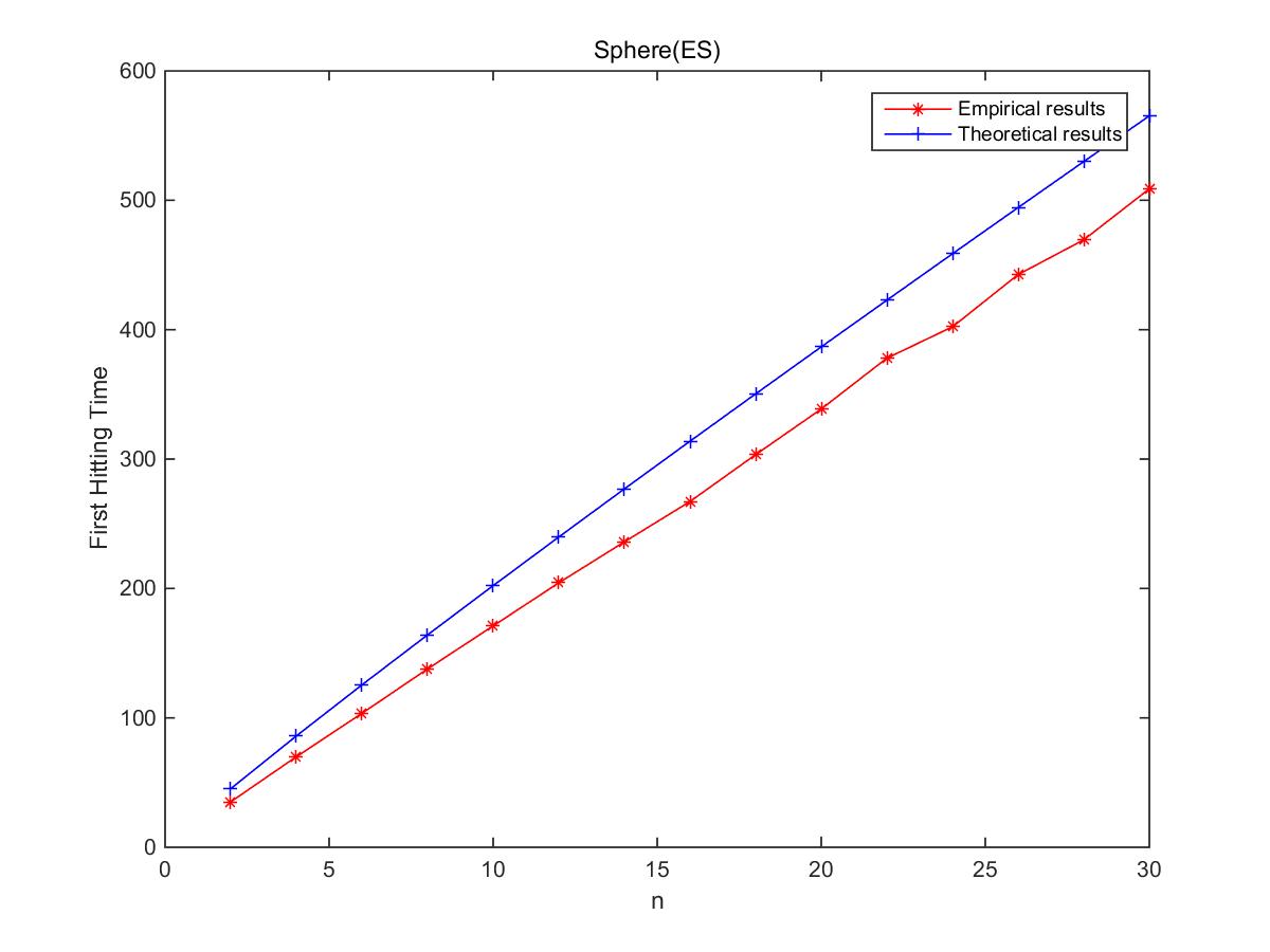 图十一 实际平均首达时间与估算上界的比较结果 本次研究以平均增益模型作为理论分析框架,使用统计采样实验来辅助估算连续型进化算法计算时间的过程,提出了一种基于平均增益模型的连续型进化算法时间复杂度估算方法。除了平均增益模型外,其他理论分析工具也可以用于讨论各种前沿进化算法的计算时间。近期有一些同行的工作甚至突破了(1+1)EA的结果,不过也是一些理论构造的特例。在未来的工作中,如果把本项工作提出的估算方法引入到层次分析法、漂移分析、转换分析等优秀的分析框架里,将有望得到丰硕的研究成果。