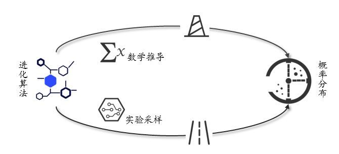 图五 所提估算方法与传统数学推导方法的区别 而本项研究中所提的估算方法则通过实验采样的方式来计算平均增益,从而避开了这个难点,两者的区别如图五所示。该采样实验的思路主要是在一次迭代中,令进化算法产生新解的过程独立地重复若干次,并分别计算新解的增益,从而用增益的平均值来估计增益的期望。上述实验的流程如图六所示,关于该方法的细节请参见引文[1]。