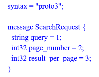 图1展示了一个简单的示例。我们定义了一个搜索请求消息,每一个搜索请求都包含了查询字符query、搜索请求返回的页面数量page_number和每页中的结果数量result_per_page。该示例的第一行声明了我们正在使用proto3。如果没有该行,ProtoBuf编译器将默认使用proto2。需注意,此该行一定要位于文件的第一非空及且非注释行。