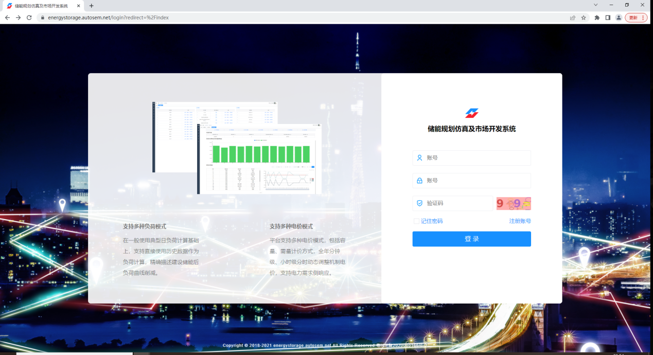由于用户负荷特性各异,各新型储能设备特性不同,使用固定能源设备的储能规划系统难以对设备特性进行精准的描述,导致储能规划产生偏差。根据国家双碳对能源转型发展的要求,为适应不同的电力市场环境,使储能系统以最佳运行优化策略来实现经济和社会效益最大化,促进储能市场化良性发展,智能算法研究中心联合各大投资方、知名设计院和设备厂,基于微搜索算法开发了一款储能市场开发仿真系统(系统网址:https://energystorage.autosem.net/,以下简称“仿真系统”)。该系统涵盖用户侧储能、电网侧独立储能、联合调频储能和新能源智能微网储能等多个应用场景。其中,用户侧储能因其商业模式清晰而成为储能市场最活跃的领域。