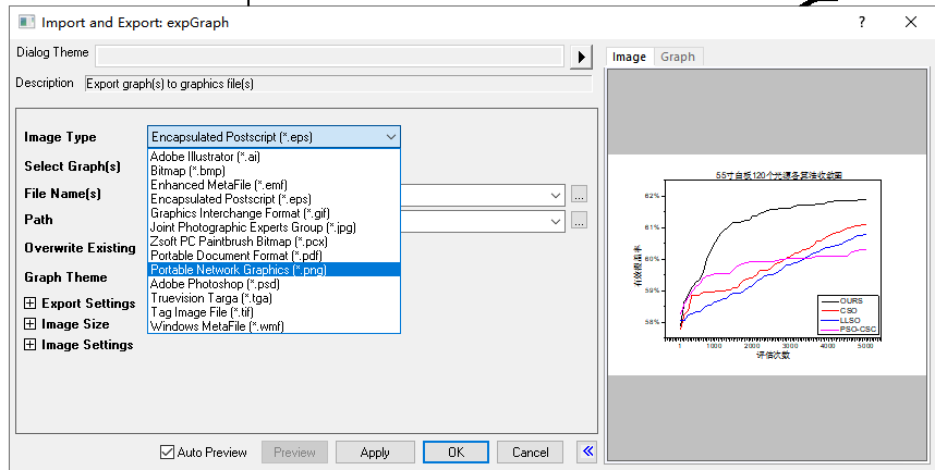 完成图片绘制后,我们需要导出图片并将其运用到论文中。Origin软件支持导出两种图片类型:矢量图和位图。矢量图因为便于修改,且放大后不会失真,所以常被用于学术论文和实验报告中。矢量图的导出非常简单,只需将光标放在图片的空白处,点击鼠标右键,选择【Copy Page】复制矢量图,再将其粘贴到所需文档中即可。 除了矢量图,我们还可以通过Origin中菜单栏的【Export Page】功能获取指定格式和大小的位图。将光标放在图片的空白处,点击鼠标右键,选择【Export Page】,即可对导出图片格式、图片大小等参数进行设置,如图16所示。
