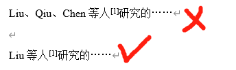 (3)行距与正文不一致等。 6. 引用不规范: (1)没有做到每一篇参考文献都在正文中引用,并按正文中出现的先后次序罗列; (2)在类似“XX等人[11]研究的……”的引用时,有的论文把三位作者全列出来,正确做法应该是只列一位作者;