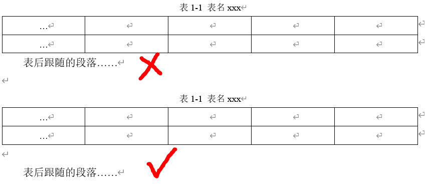 5. 表的引用不具体:没有在正文中用“如表x-x”等方式引用每一个表; 6. 表与其后面的文字段落之间没有隔行。