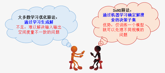 图1 生产车间 现有针对FJSP的研究通常假设生产调度模型中的机器可以长时间运转,无需停工,即加工时间连续。然而,这与真实生产场景中必须考虑机器临时性检修或周期性维护导致加工过程间歇性停止的情况不符。此外,出于对聚焦核心业务或者降低生产成本的考虑,工厂会委托第三方代加工产品的部分工序。现有的FJSP模型主要采用成本折算的方式处理外协工序,即将工序外包作为可选项而非强制性约束。 由于现有调度模型尚未考虑上述两种在实际工业场景中常见的约束情形,因此需要建立更真实的FJSP模型以及能求解该复杂调度问题的算法。在求解调度问题的优化算法方面,现有基于学习的优化算法难以处理组合优化问题中结构化信息数据维度不确定的问题。此外,已有算法主要采用直接生成最终解或以贪婪策略展开搜索的寻优方式,所以在优化结果的精确度上难以与传统的元启发式算法相比。 为解决电源设备生产制造行业中的实际调度问题,智能算法研究中心的研究人员对带周期维护及强制外包约束的柔性工作车间调度问题(Flexible Job-shop Scheduling Problem with the Periodic Maintenance and Mandatory Outsourcing constraints,FJSP-PMMO)进行建模,并设计了一个基于强化学习的微搜索算法——自组织神经搜索框架(Self-organizing Neural Scheduler, SoNS)来求解FJSP-PMMO问题[1]。与最新的FJSP模型相比[2-3],FJSP-PMMO考虑了间歇维护以及外包因素,故每个工件的工序数目以及加工顺序不同,且加工机器数≠工件工序数,解的表示为有向无环图而非顺序序列。在算法层面,SoNS采用机器学习的方法实现了对工件加工工序以及加工位置的自适应选择,替代了同类方法中使用随机策略进行调度的方式,提高了调度的可靠性和准确性。该成果已发表在人工智能领域的国际顶级学术期刊IEEE Transactions on Cybernetics(JCR一区,影响因子19.118)上。