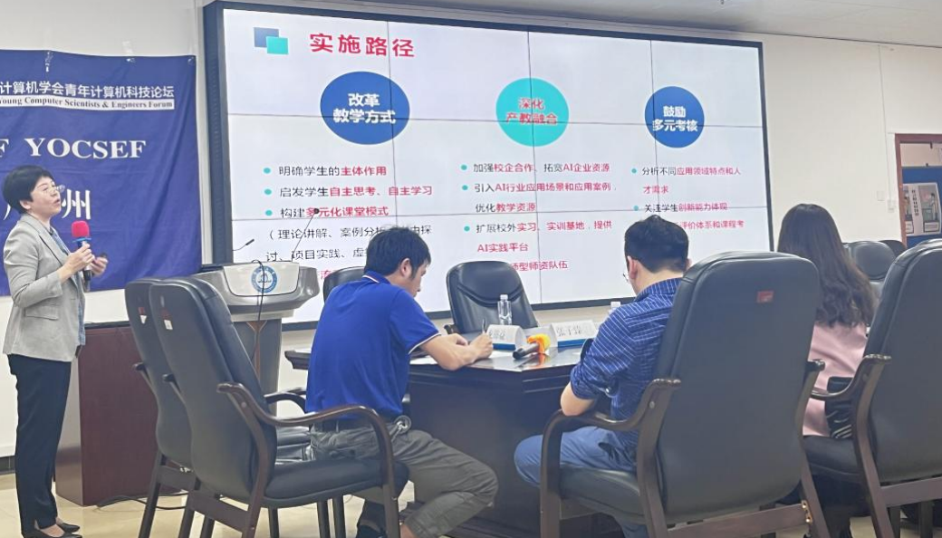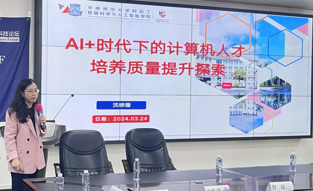 华南师范大学阿伯丁数据科学与人工智能学院副院长沈映姗以“AI+时代下的计算机人才培养办学质量提升探索”为题,指出AI时代计算机人才供应不足的痛点体现在高校培养目标不明、知识结构滞后、实践能力不足等方面。沈映姗副院长认为,应该从育人理念、办学路径、教学模式、学习范式、评价方式五个方面提升计算机人才的培养质量。