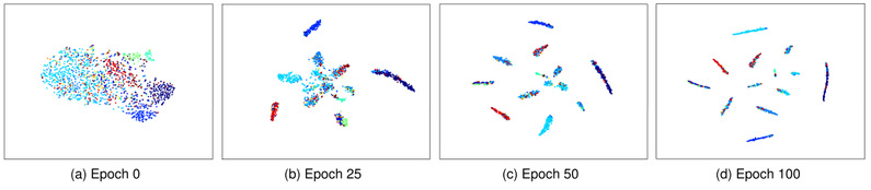 (2)特征可视化 如图2所示,训练后的特征空间呈现出清晰的簇结构,类间分离明显,类内紧凑。
