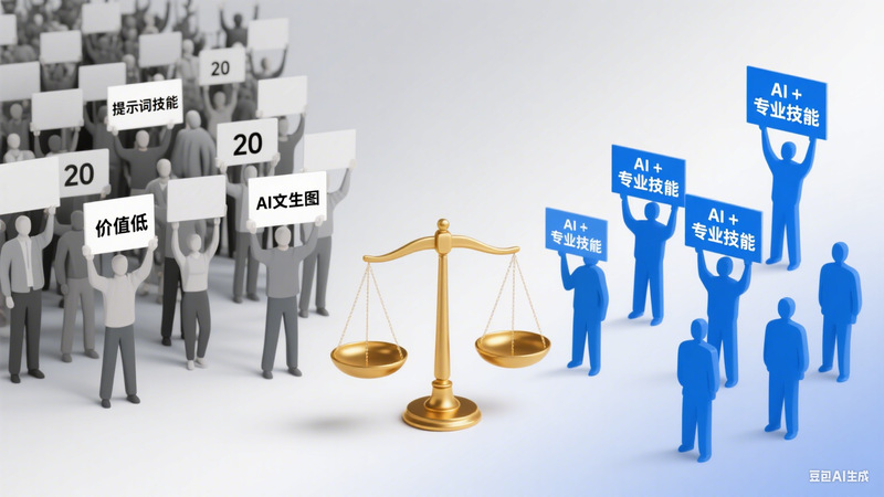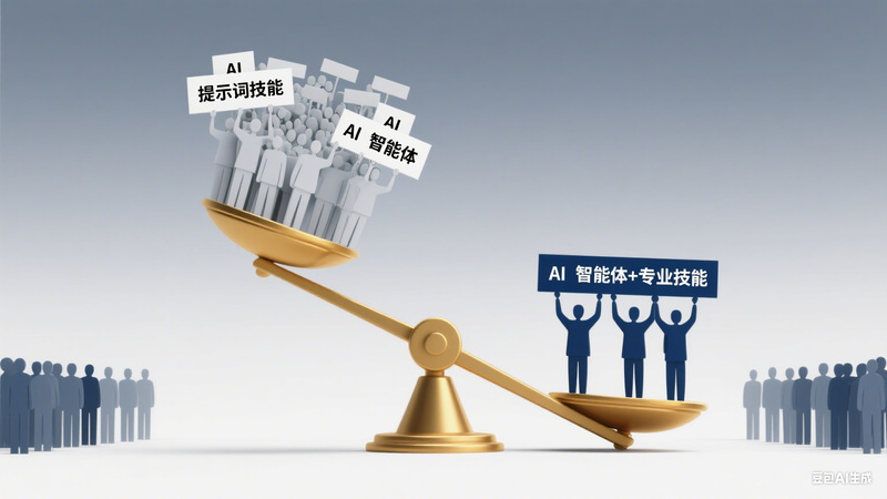 3.用案例拆解:为什么你的 AI 技能 “不值钱”? (1)案例 1:通用大模型技能的价值变化 早期大家刚接触 ChatGPT 等通用大模型时,会用 prompt(提示词)的人寥寥无几。这时 “用 AI 写文案、做分析” 的能力稀缺,“同类能力人数” 极少,所以懂提示词的人能快速凸显价值。 但随着各类 “3 天学会提示词”“AI 智能体入门课” 的普及,越来越多人掌握了这些技能。此时 “同类能力人数” 激增,即便 AI 的 “赋能效果” 没变,每个人的 AI 赋能价值也会大幅下降 —— 这就是为什么现在学完提示词,你会觉得 “没提升竞争力”。 (2)案例 2:翻译耳机的价值,取决于 “谁在用” AI 翻译耳机能让普通人听懂外语,“赋能效果” 很明确(突破语言障碍)。但如果是导游、外贸销售等高频使用外语的职业,几乎人人都能买个翻译耳机,此时 “同类能力人数” 极多,翻译耳机的赋能价值就很有限。 可如果是医生、工程师这类专业人士,原本因外语短板无法阅读国际文献,用翻译耳机补足后,结合其专业技能(比如能看懂外文医学论文的医生),“同类能力人数” 会大幅减少(毕竟同时懂专业 + 能用 AI 破语言障碍的人更少)。这时,AI 翻译耳机的赋能价值就会变得很高。 (3)案例 3:单一 AI 技能 vs 综合能力 有人学了 “AI 文生图” 就觉得能当设计师,学了 “AI 生成代码” 就觉得能当程序员,但现实是:这些单一技能通过短期培训就能掌握,“同类能力人数” 会快速膨胀,价值自然上不去。 反之,若你是市场营销人员,用 AI 生成图文素材的同时,还能结合行业经验优化内容策略;或是程序员用 AI 生成代码后,能快速排查逻辑漏洞 —— 这种 “AI 技能 + 专业能力” 的组合,“同类能力人数” 会少得多,AI 赋能价值也会成倍提升。